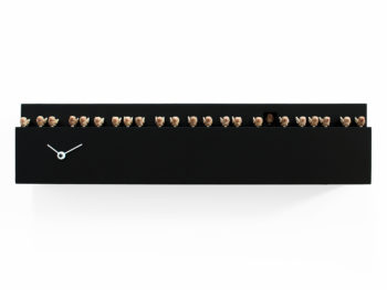 Een moderne koekoeksklok die de koekoek van de zijkant laat zien. Hoe tof is dat! Het walnoten element in het midden geeft deze klok een extra elegante touch.
