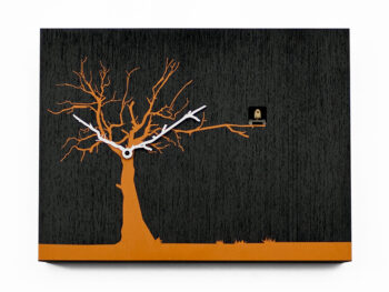 “Kiekeboe!” Oftewel: “Peek-a-Koo!” Hè? Waar heeft de koekoek zich nu verstopt? Wauw, ook van de zijkant is onze koekoek een prachtig plaatje! De overwachte schuilplaats van de koekoek maakt dit een unieke, speelse moderne koekoeksklok. De ronde vorm en het walnoten element in het midden maakt deze klok uniek.